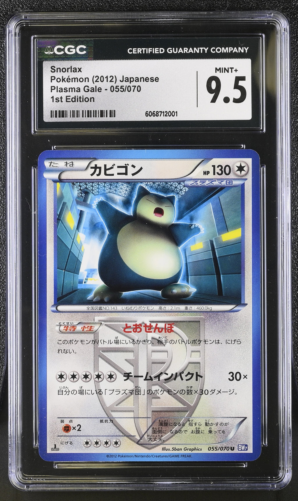 Snorlax 055/070 1st Edition Plasma Gale Pokemon Japanese CGC 9.5 Mint+