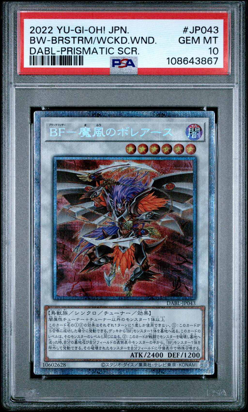 Blackwing-boreastorm The Wicked Wind DABL-JP043 PSA 10 2022 Prismatic Secret Rare Yugioh