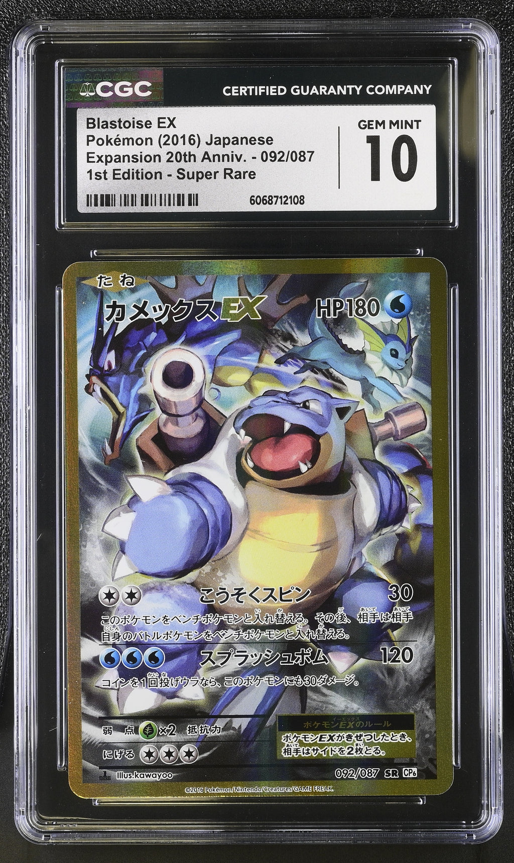 Blastoise EX 20th 092/087 1st Edition CP6 Pokemon Japanese CGC 10 Gem Mint