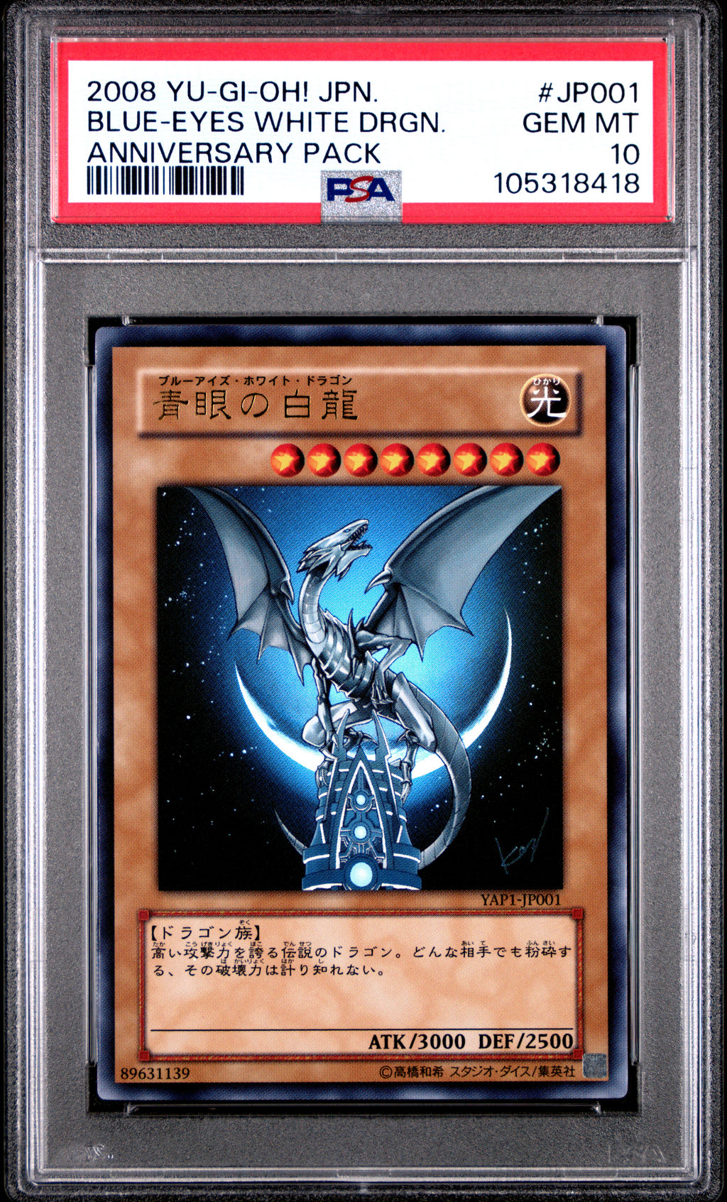Blue Eyes White Dragon YAP1-JP001 PSA 10 2008 Anniversary Pack Yugioh Japanese