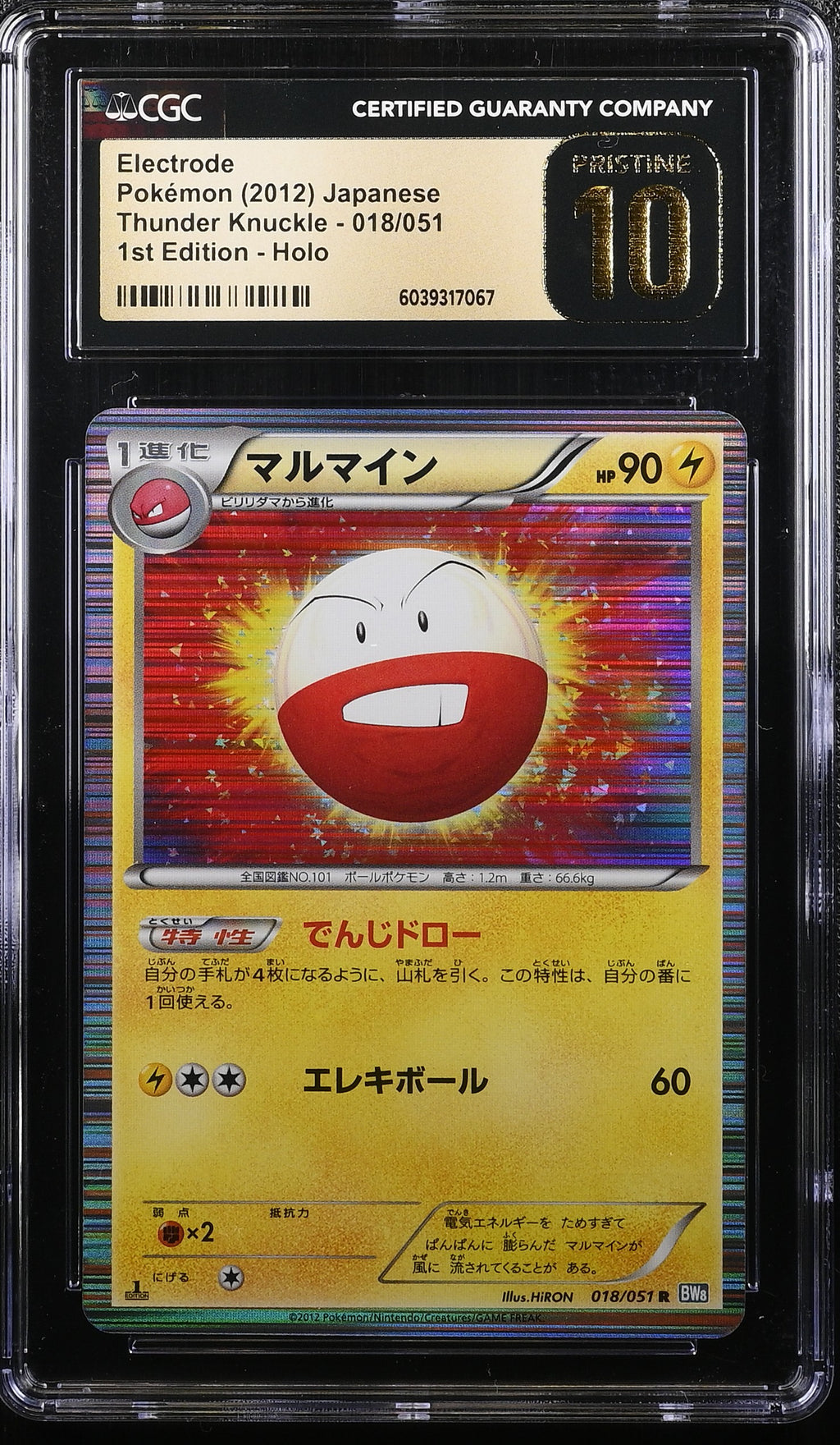 Electrode 018/051 2012 1st Edition Holo Pokemon Japanese CGC 10 Pristine