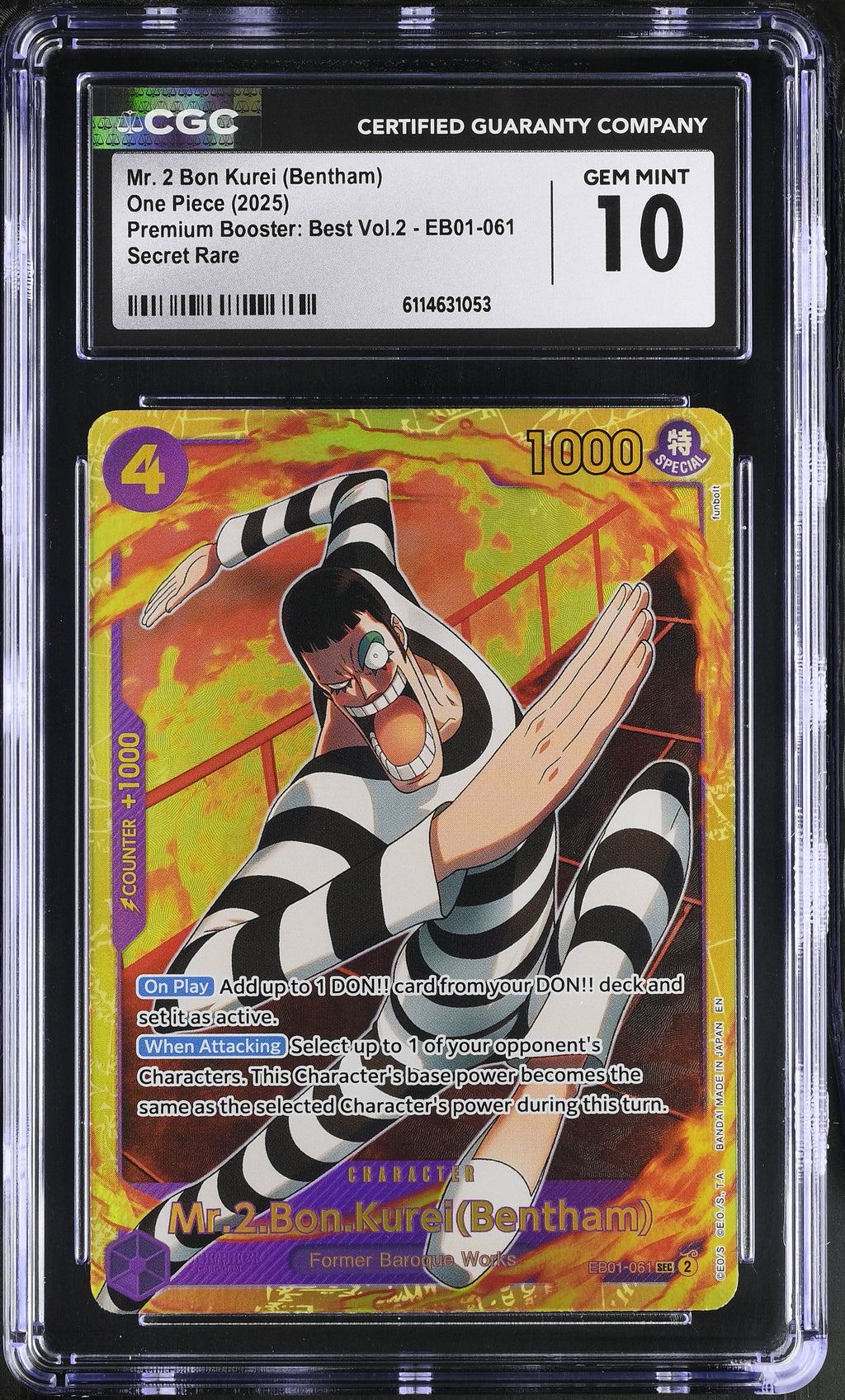 Mr. 2 Bon Kurei (bentham) EB01-061 CGC 10 Gem Mint 2025 Best Vol.2 One Piece
