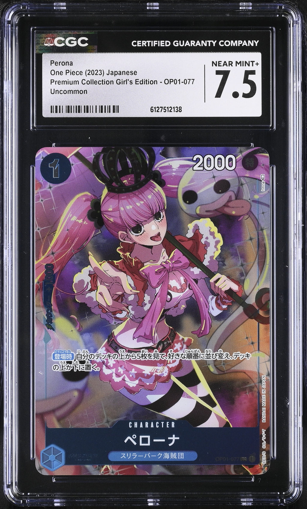 Perona OP01-077 CGC 7.5 Near Mint+ 2023 Premium Collection Girl's Edition One Piece Japanese