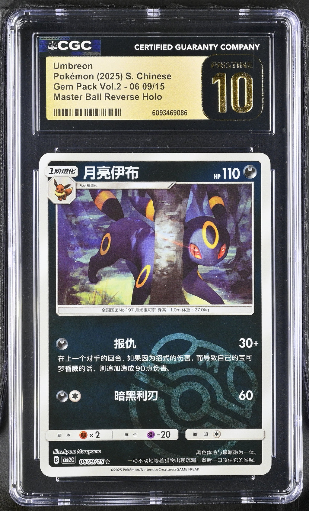 Umbreon 06 09/15 CGC 10 Pristine 2025 Master Ball Reverse Holo Gem Pack Vol.2 Pokemon S. Chinese