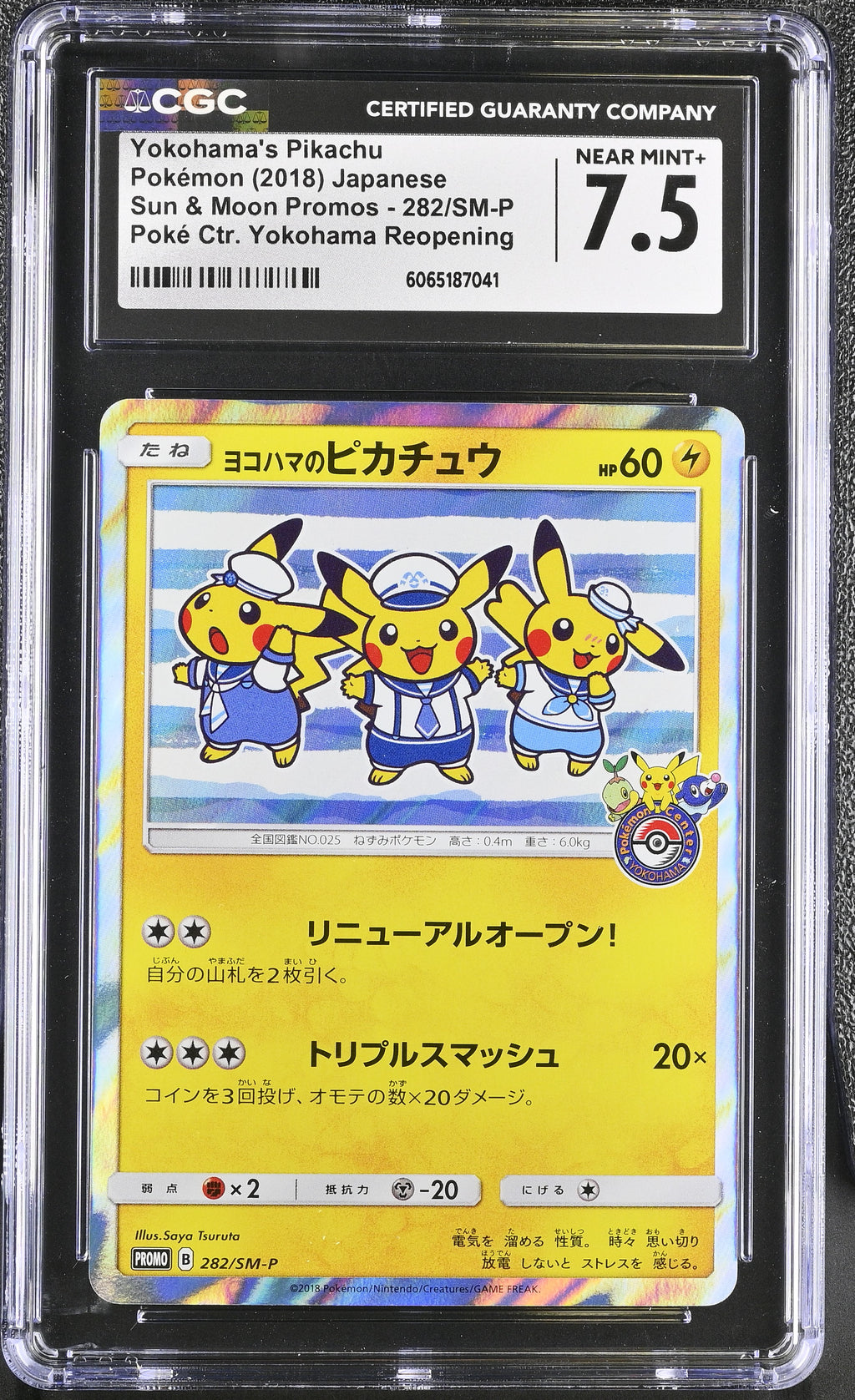 Yokohama's Pikachu 282/SM-P CGC 7.5 Near Mint+ 2018 Poke Ctr. Yokohama Reopening Sun & Moon Promos Pokemon Japanese